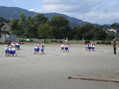 10月11日の運動会に向けて各学年とも練習にだんだんと熱が入ってきました。校庭から流れてくる音楽や子供たちのかけ声が聞こえてくると、運動会シーズンらしい雰囲気になってきます。業間休みには紅白に分かれて、全校応援練習も行われました。