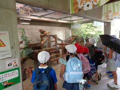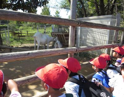 今日は1・2年生の生活科見学の日。今年度は、東松山にある埼玉県こども動物自然公園に行きました。キリンやレッサーパンダを見たり、牛の乳しぼり体験をしたり、グループ別に行動したり、楽しく充実した一日を過ごすことができました。