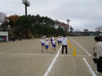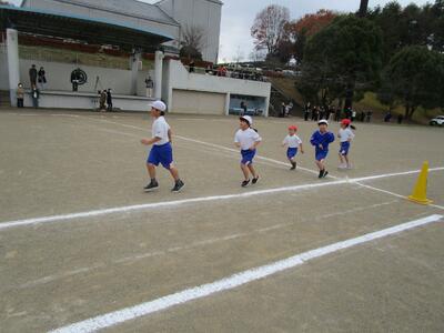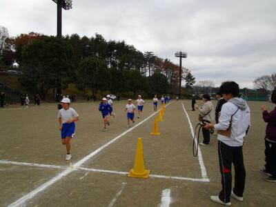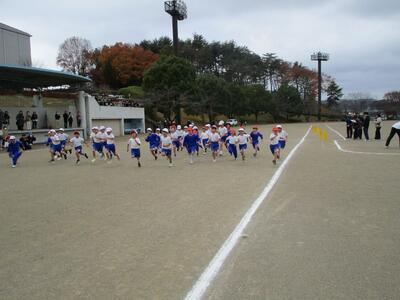 今日は持久走大会がありました。あいにく雲が広がり肌寒い天候となりましたが、子供たちは練習と同様に全力で取り組んでいました。参加方法は、順位をつけずタイム測定のみの「タイムコース」、順位とタイム測定の「ランキングコース」の2つから自分で選び、それぞれの目標に向かって挑戦しました。汗いっぱいかきながら全力で走り抜く子供たちの姿と、それを応援する仲間たちの声、さらに、お忙しい中ご都合をつけて観覧してくださった保護者の皆様の温かい声援によって、寒さを忘れるほどグランドが熱気に包まれました。