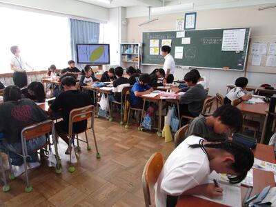 第2回校内授業研究会 投稿: 松久小学校長 (16:45) 今日の5時間目は第2回校内授業研究会がありました。6年生の算数「円の面積」の単元で、面積を求める公式がない図形の面積の求め方を考えました。子どもたちは様々な解き方を考えグループ内で活発に伝え合っていました。その後の研究協議会では授業の振り返りを行いました。 Tweet -